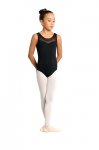 Tank leotard with sweetheart neckline, sheer front yoke and back inserts with floral flock print. Front fully lined.Nylon/Spandex