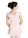 Star studded dreams are inspired by the Flutter Sleeve Dress. This dress features a fully front lined bodice and classic scoop necklines. Chiffon flutter sleeves add style and breathability. Rising dancers will shine in this number.